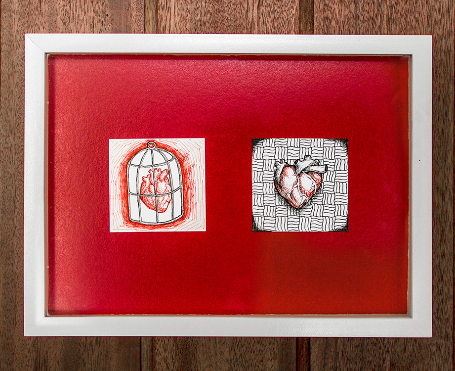 A series of work containing drawings made with ink pens black (and sometimes red).